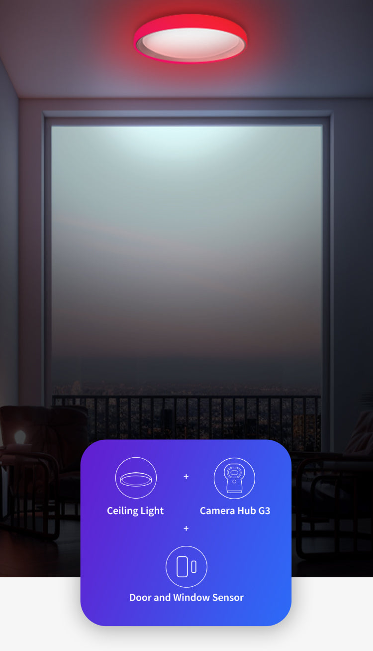 [RGB+IC Status Light Ring & Gradient Effects] The Ceiling Light T1M offers an extensive array of lighting options, catering to various usage scenarios and preferences. With the integrated RGB+IC, the side light of the T1M creates stunning gradient effects, which adds a customized ambiance with vivid color transitions to your room. Additionally, the side light can also be used with other Aqara devices and act as a status indicator for events such as doorbell rings and security disarming.