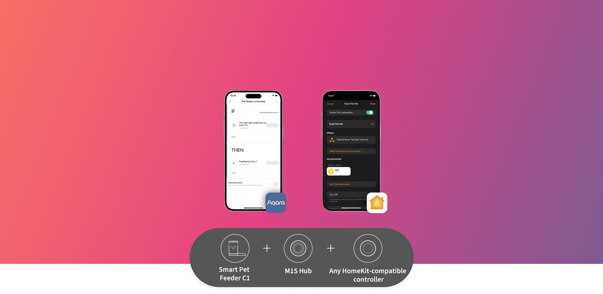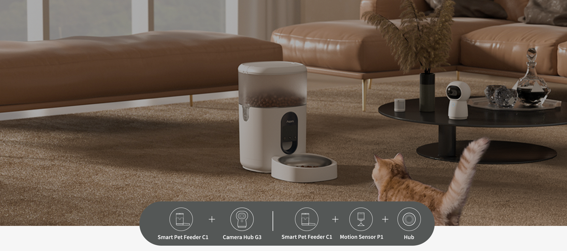 [Smart Home Automations]The Aqara cat feeder can help you to enjoy automated control of other Aqara devices. Automations via the Aqara Home App and IFTTT are supported. For example, with an Aqara Camera Hub G3, IF food was dispensed, THEN the camera will turn to the Pet Feeder C1 automatically, record a video and mark it on the video timeline, which can help you to check if your pets have eaten their food.